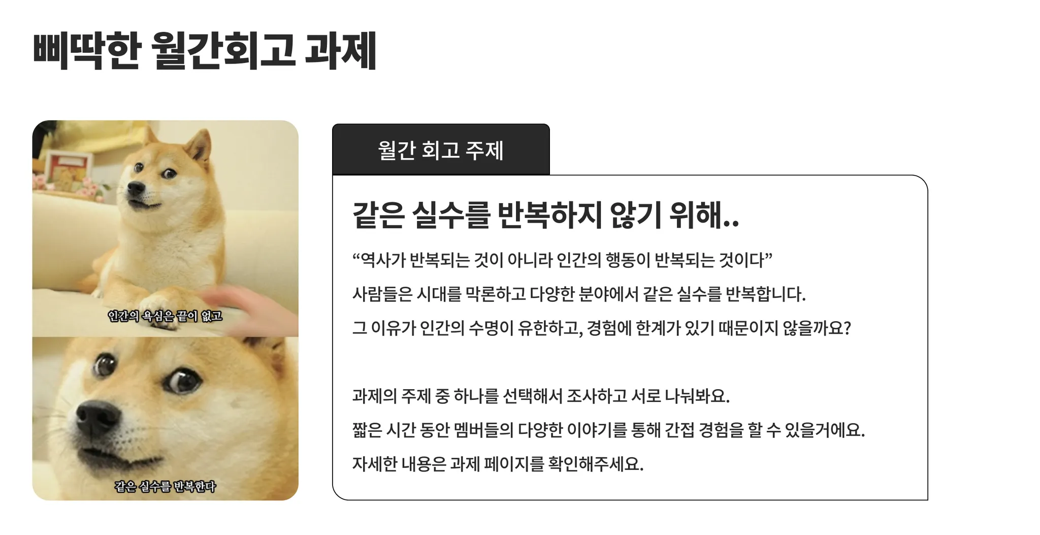 주제 : 같은 실수를 반복하지 않기 위해 서로의 경험 나누기