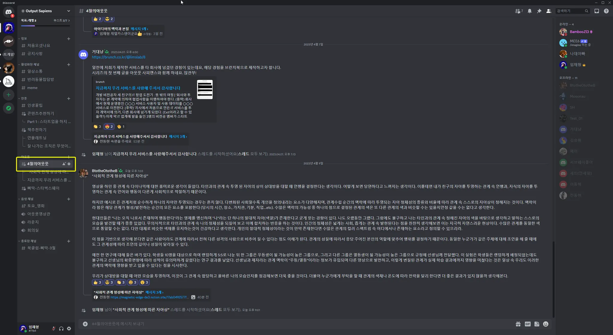 3. “행동하기” 활동은 디스코드의 “6월의 아웃풋” 채널에 글로 올려주세요.